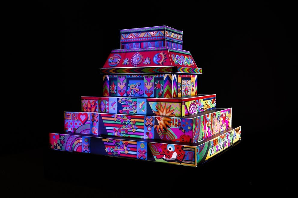 The BAM Biennial features several other compelling works: Northwest multimedia artist Dave Kennedy brings a bricked-up building to life with collaged photographs in “Everything That Remains”; Redmond artist Angie Hinojos contributes a glimmering Mayan temple that tells ancestral stories with contemporary graphic imagery in “The Dialect of the Heart”; Leviathan, photographer Eirik Johnson’s striking series of close-range photographs, reveals the ominous architecture that emerges when massive shipping vessels are viewed from water level; and Portland brothers Santigie and Sapata Fofana-Dura have crafted a towering black structure of salvaged timber and discarded construction materials, which smells of charred wood and seems torn from a foreboding fairy-tale forest.