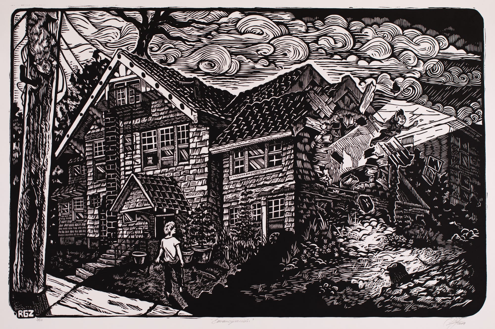 Now an assistant professor of printmaking at Gonzaga University with his own family to nurture, Gil Zambrano pours his thoughts about home into painstakingly carved artworks. He’s made a piece about the warm home his mother and grandmother created; one about the anxiety of home ownership; another imagining the day his young son grows up and leaves home.