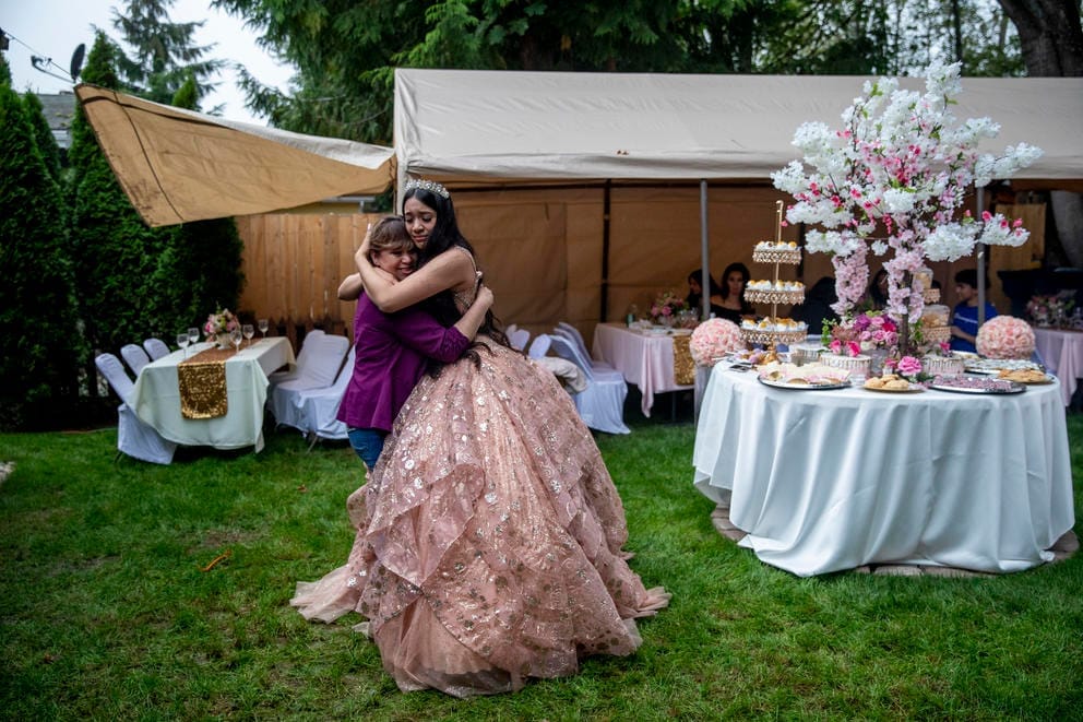 Evelyn Hernandez and her mother, Mariana, hold each other and cry during Evelyn’s quinceañera on Oct. 3, 2020. I photographed this day with the family as a part of a story looking at how milestones have been reshaped in 2020. Nearly 800 guests were originally going to be in attendance, but the family scaled it down to a small backyard celebration with just a handful of close family and friends. Growing up in Mexico with little money, Mariana didn’t have a quinceañera. She said it was important to her to give her daughter something she never had herself. On this day, Evelyn and a couple of friends took photos in front of the pink and floral decorations while her dad, Jorge, made carne asada on the grill. She took turns dancing with each member of her family — her mom, dad and little sister — and said she couldn’t help but feel emotional. Although Evelyn’s day was different from what she imagined, she said she didn’t feel disappointed. She felt thankful. “Both of my parents giving me everything I have and not having to worry about anything else. I just let that sink in,” she said, “like they're really here for me. They're always going to be here for me.” — Dorothy Edwards