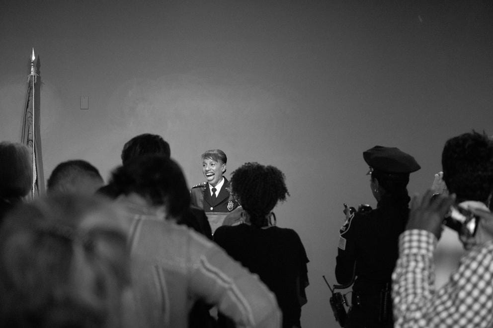 Carmen Best finished a day of ceremonies at the Northwest African American Museum late Tuesday afternoon with one final swearing-in. Following the example set by her boss, the mayor, the new permanent Seattle police chief turned the event into a tour of the community.