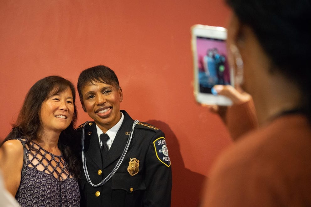 Seattle Police Chief Carmen Best poses with friends and family after the ceremony.