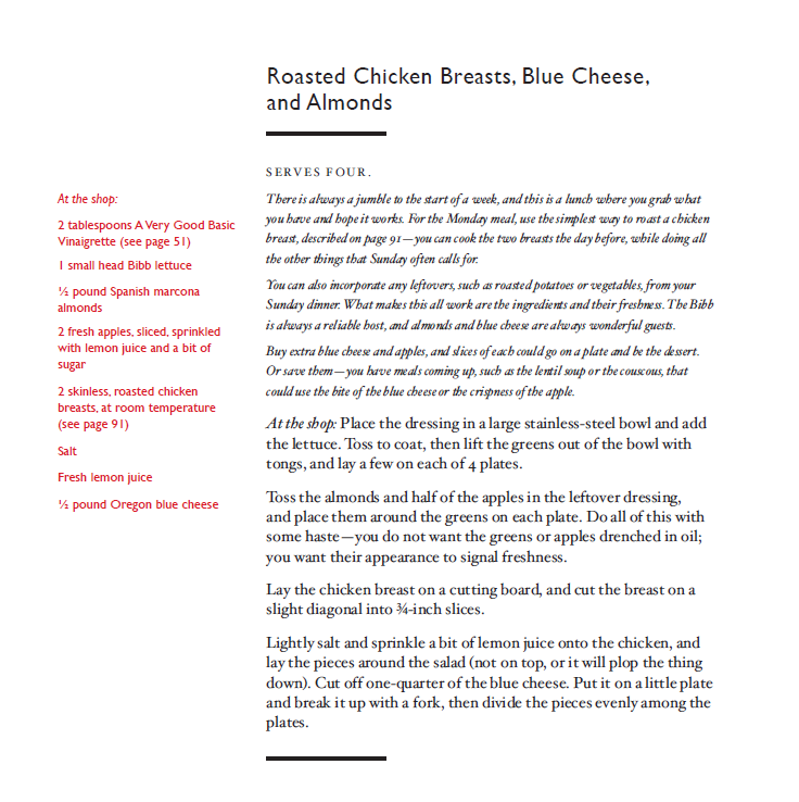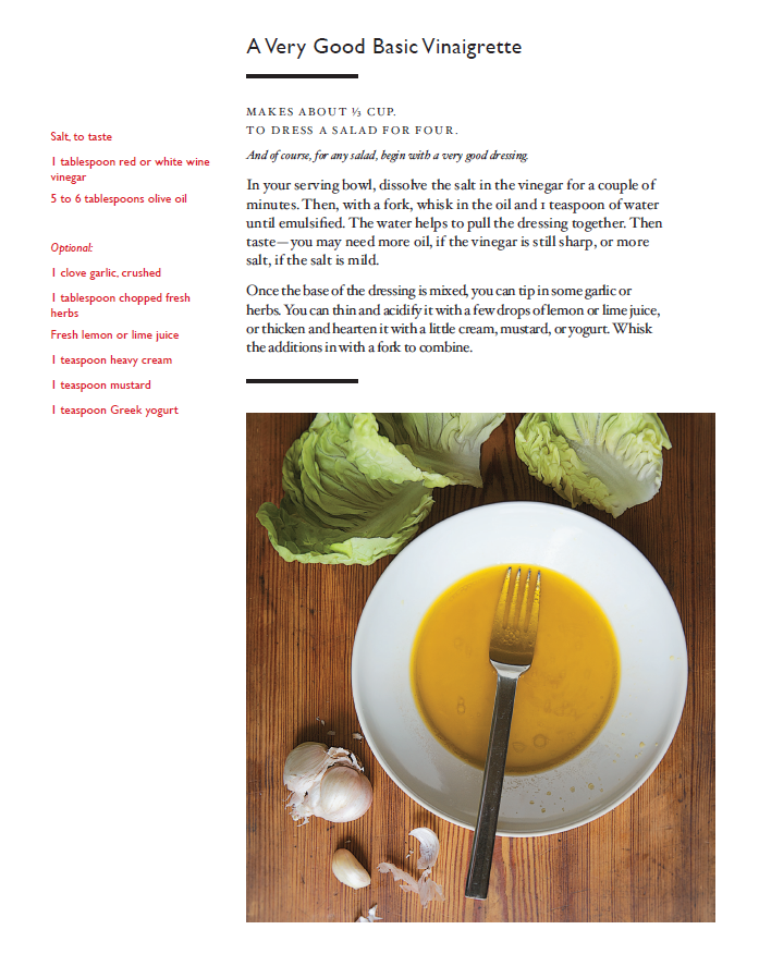 “We are not always certain what we will have for lunch,” Miller writes in the book’s introduction. “But we are always certain it will be fresh and that it will be specific to each of us. We have a kit of things on hand – parsley, lemons, fruit, cheese, pickles and olives and such – to dress up any meal and make it special. And we always have some combination of beans or rice, pasta or lentils on hand, as well, cooked and ready to go. They are the proud and historic opposite of fast food.”